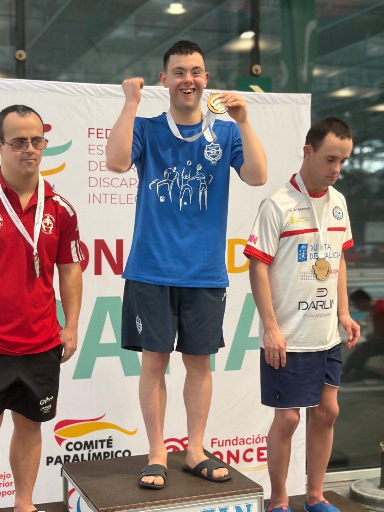El palmarés obtenido por el equipo de natación adaptada de APDEMA refleja la constancia y el trabajo compartido de las y los nadadores. Entre los principales logros, Óscar Valderrama se proclamó campeón de España en 50 y 100 metros mariposa y sumó dos platas en 200 braza y 200 estilos. June Izuskitza, por su parte, logró el título nacional en 200 estilos y el bronce en 100 braza. Junto a ellos, Markel Herreros y Álvaro Martínez de Antoñana que nadaron a un altísimo nivel completaron la representación del club. Una edición más, el equipo fue liderado por John Mulvey, su entrenador y mentor cercano; y contó con el apoyo y acompañamiento del equipo técnico del Servicio de Ocio y Participación Social.