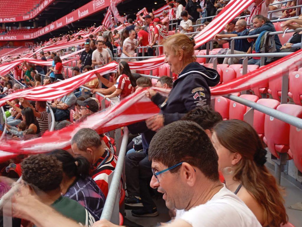 El domingo 12 de octubre pasamos un día estupendo en Bilbao. Comenzamos la jornada disfrutando del día por los alrededores de San Mames, viendo los puestos, el estadio y el ambiente que había. Después de comer, tras una buena sobremesa con agradable charla y muchas risas, nos acercamos al estadio para disfrutar del partido Athletic de Bilbao-Real Madrid femenino. Lo dimos todo animando al equipo rojiblanco pero aunque el resultado no fue el que nos hubiera gustado nos lo pasamos en grande. Esperamos que la próxima cita sea animando al Alavés.