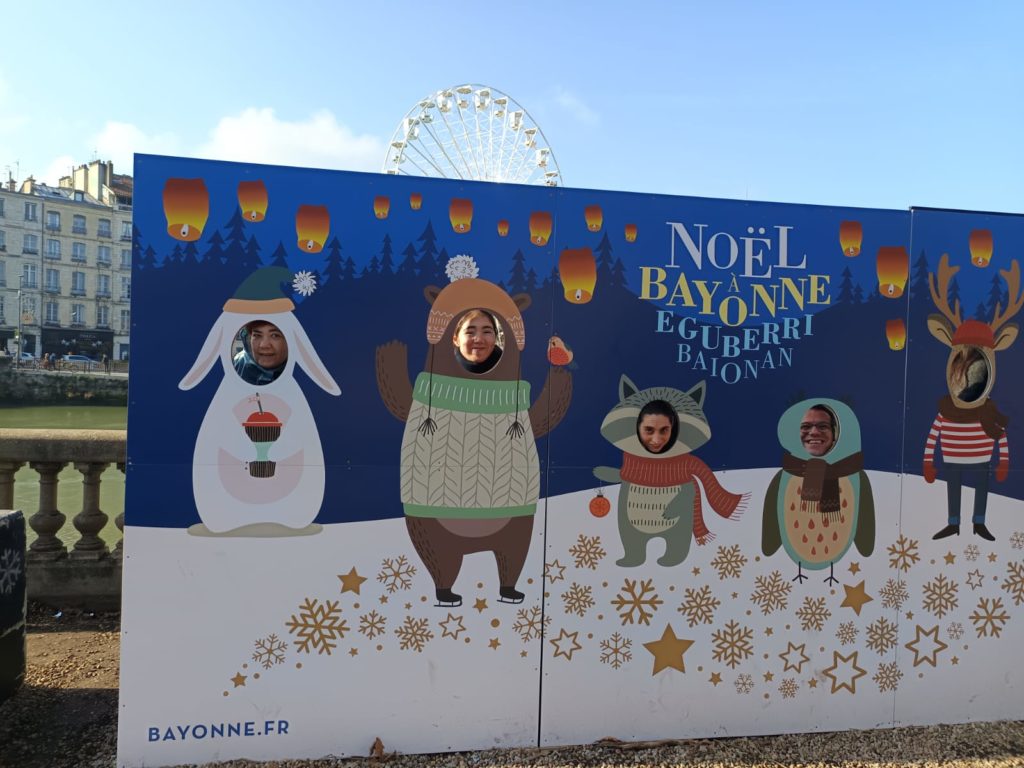 Una vez en Bayona, visitamos la noria gigante y el mercado navideño con sus puestos llenos de productos que nos hicieron la boca agua. Nos hicimos muchísimas fotos divertidas y comimos estupendamente.